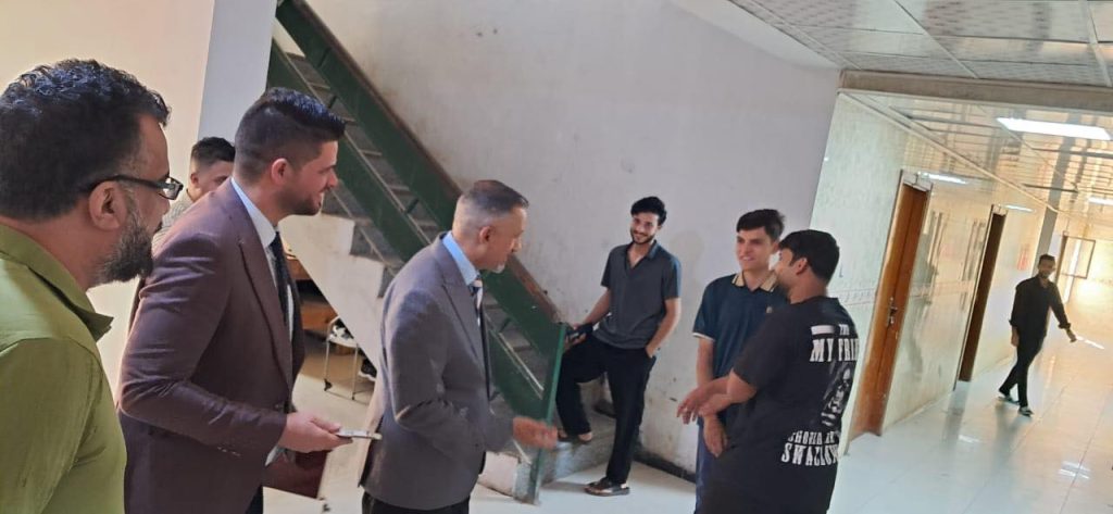 تفقد عميد الكلية التقنية ذي قار الأستاذ الدكتور (حسين طوكان عبدالله) برفقة معاون العميد للشؤون الإدارية والمالية الأستاذ المساعد الدكتور (حسن طالب هاشم) الأقسام الداخلية الخاصة بطلبة الكلية للاطلاع على واقعها الخدمي ومتابعة احتياجات الطلبة.