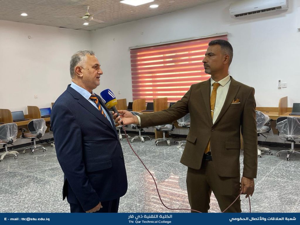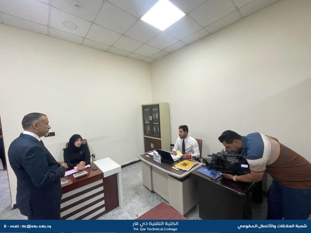The Dean of Dhi Qar Technical College, Professor Dr. Hussein Twkan Abdullah, welcomed a team from Al-Iraqiya Satellite Channel during an official visit aimed at highlighting the college’s academic, scientific, and student activities, as well as its most notable achievements and developmental projects.