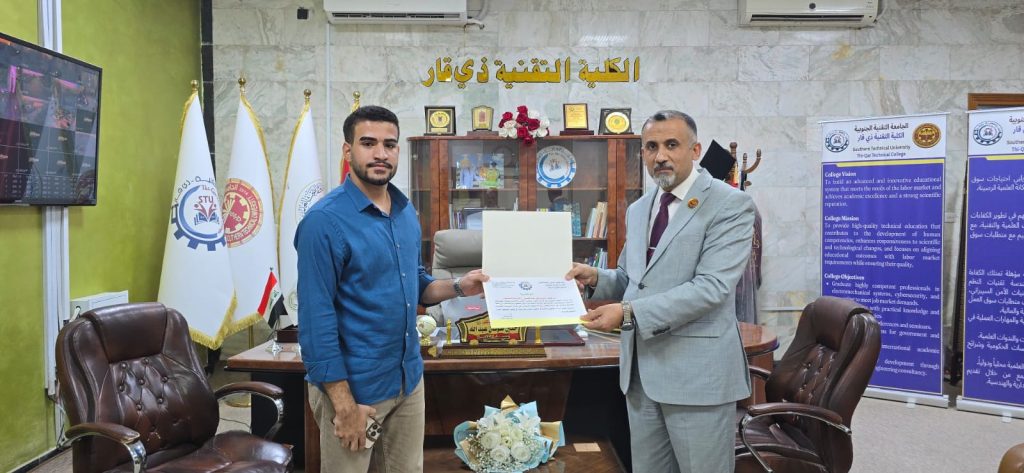 الكلية التقنية ذي قار تكرم أحد تدريسييها بمناسبة ختام مشواره الأكاديمي