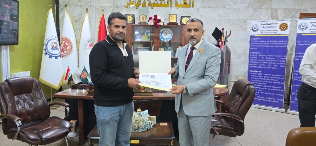 الكلية التقنية ذي قار تكرم أحد تدريسييها بمناسبة ختام مشواره الأكاديمي