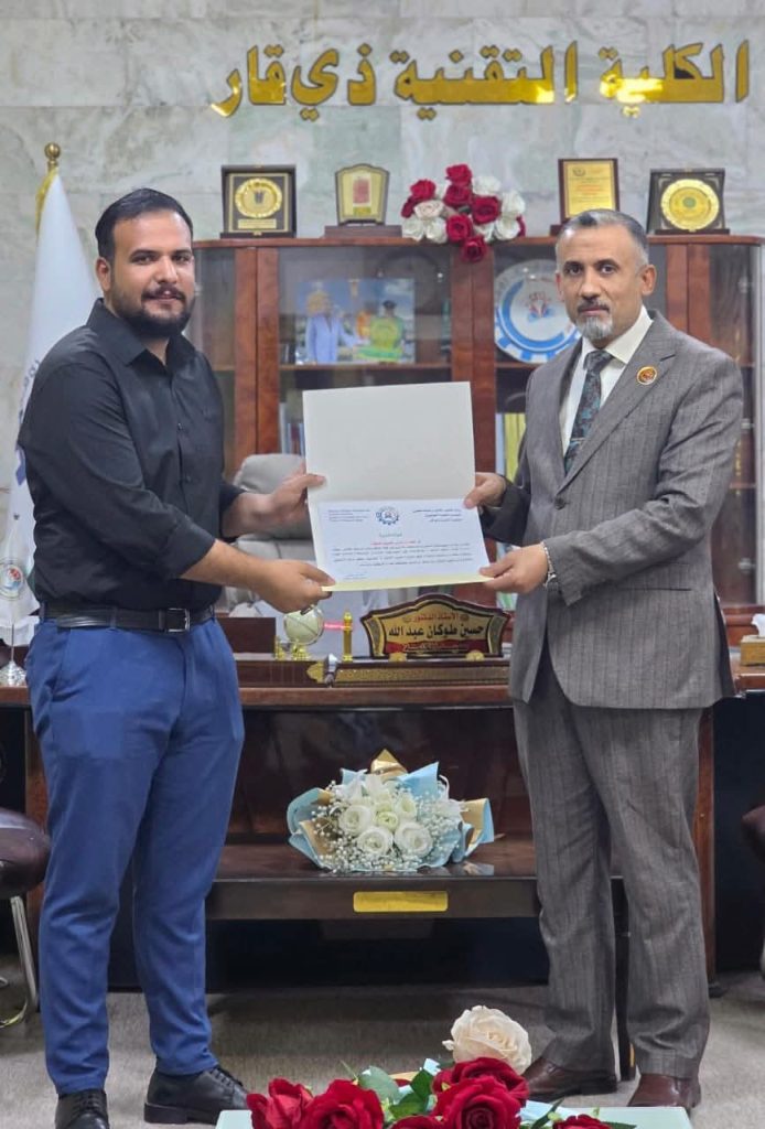 عميد الكلية التقنية ذي قار يكرم الموظف المتميز لشهر تشرين الثاني