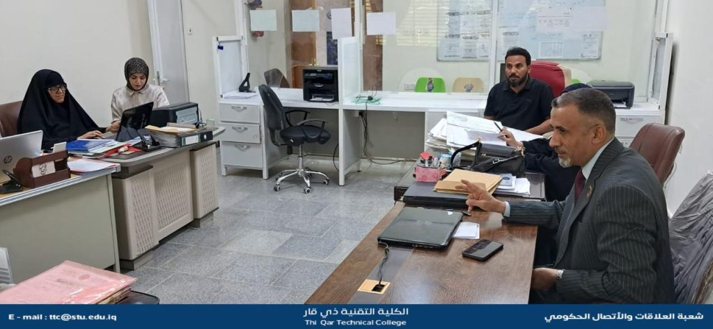 عميد الكلية التقنية ذي قار يتفقد الأقسام لمتابعة تطبيق نظامي (SIS) , (HR)