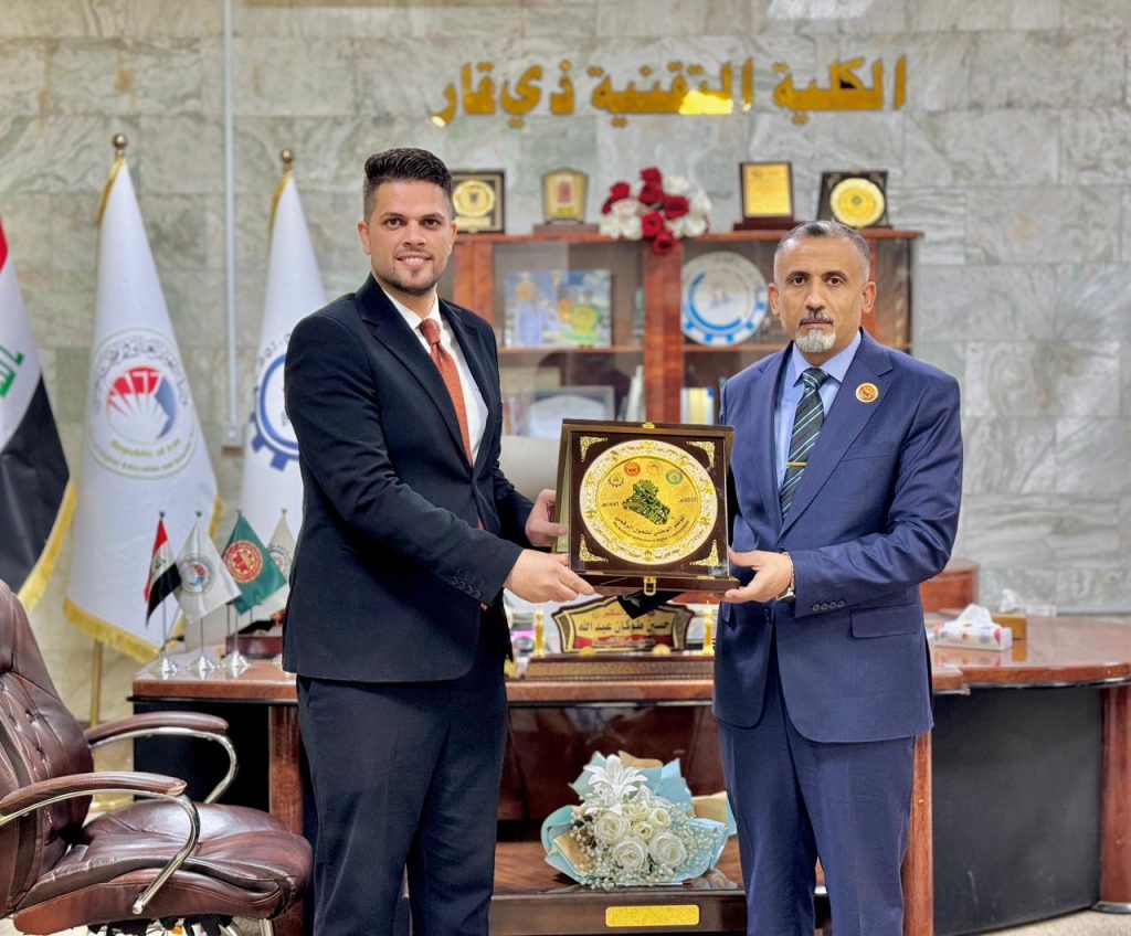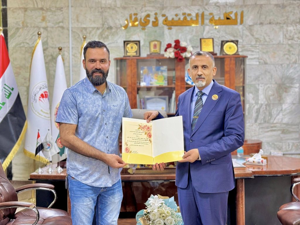 عميد الكلية التقنية ذي قار يكرم معاون العميد للشؤون الإدارية والمالية تقديرا لجهوده في إنجاح