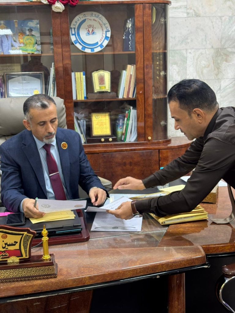 زيارة رسمية لعميد الكلية التقنية ذي قار إلى قيادة شرطة ذي قار لتقديم الدعوة لحضور
