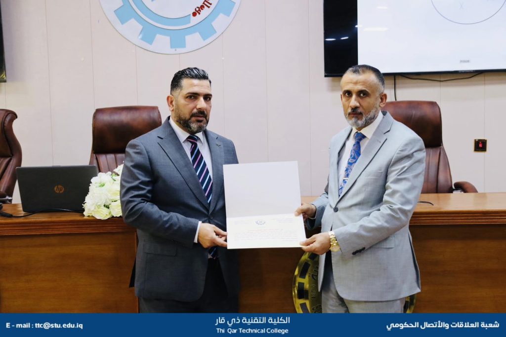 قسم شؤون المرأة في ديوان المحافظة يكرم عميد الكلية التقنية ذي قار