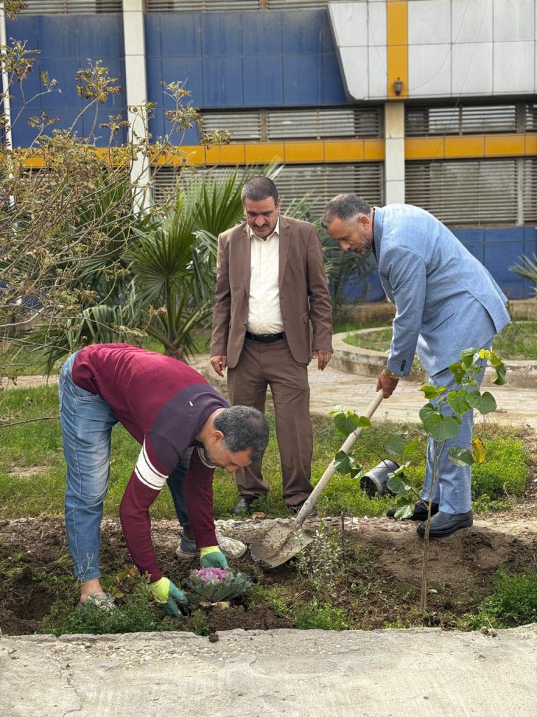 برعاية السيد عميد الكلية التقنية ذي قار متابعة نشاط طلابي لتطوير حدائق الكلية