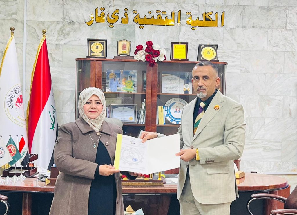 عميد الكلية التقنية – ذي قار يقدم شهاده تقديريه لجهودها العلمية المتميزة